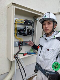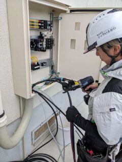 分電盤内のブレーカー増設や配線整理、高圧ケーブルの圧着作業など、技術者としてやりがいのある業務が中心です。