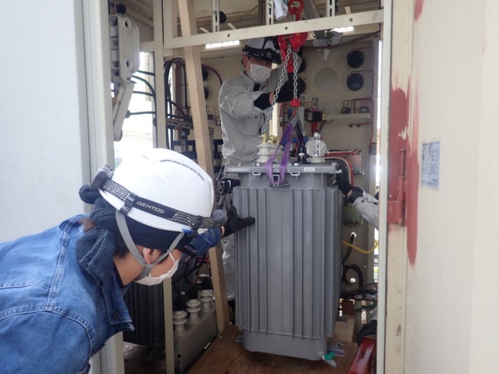 前回にお知らせしていたキュービクルの改修工事の様子をご紹介します。
